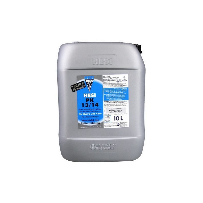 | W okresie kwitnienia rośliny mają zwiększone zapotrzebowanie na fosfor i potas a poprzez zastosowanie PK 13/14 całkowicie zaspokajamy tą potrzebę.Okres kwitnienia to najważniejsza faza w życiu rośliny. Metabolizm funkcjonuje wtedy na pełnych obrotach i wytwarzane są olbrzymie ilości enzymów do kwitnienia. Poza tym roślina staje się większa, przez co potrzebuje więcej składników. Konkretne substancje odpowiedzialne za wzrost rośliny to fosfor (enzymy i cechy dziedziczne) i potas (za transport w obrębie rośliny).Aby mieć pewność, że roślina nie jest niepotrzebnie obciążona solą, czy jej nadmiarem za wcześnie, Hesi PK 13/14 powinien być używany podczas drugiej połowy kwitnienia do tygodnia przed zakończeniem cyklu. Należy dozować stopniowo większe dawki w czasie końcowych tygodni okresu kwitnienia. PK 13/14 jest zbalansowany (przez wykres kultywacji coco lub woda) do Hesi Hydro Bloo i Hesi Coco. Zastosowanie: dodawać do wody w czasie drugiej połowy okresu kwitnienia (system hydroponiczny). Począwszy od 2 połowy okresu kwitnienia: rozpocząć dozowanie od najniższej dawki(2,5ml/10L), stopniowo zwiększając do najwyższej dawki(15ml/10L). Upewnij się, że opakowanie jest poprawnie zamknięte. Przechowywać w miejscu niedostępnym dla dzieci. |