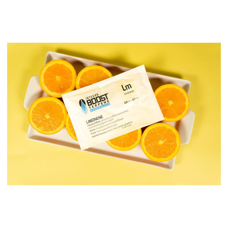 Linia Terpene Essentials obejmuje jedne z najpopularniejszych izolatów: linalool, limonene, myrcene, humulene, beta-caryophyllene, pinene, i terpinolene. Każde opakowanie Integra Boost® Terpene Essentials zawiera opatentowaną pozbawioną soli, stworzoną na bazie roślin formułę regulującą wilgoć.