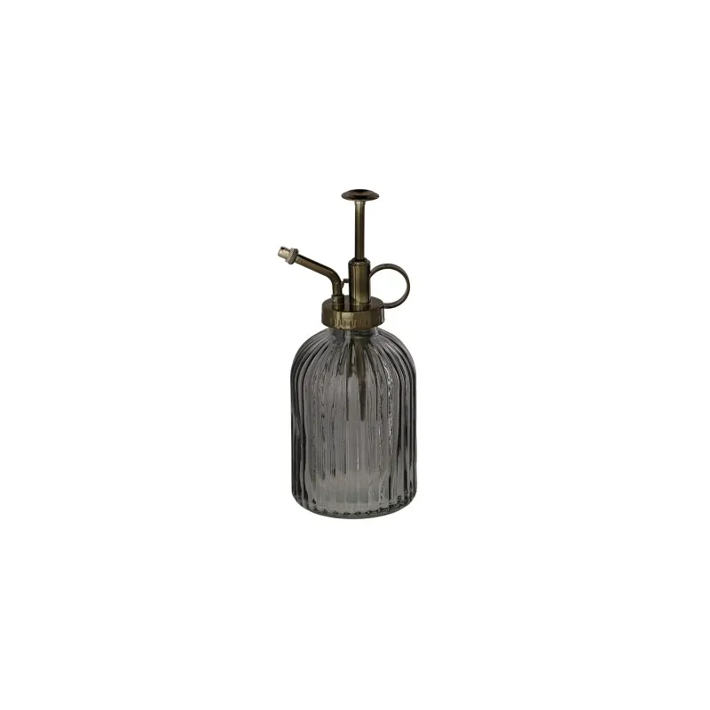Spryskiwacz Esschert Design to stylowe i praktyczne narzędzie do delikatnego zraszania roślin w domu i ogrodzie. Wykonany ze szkła ze szlifowanym (ribbel) wzorem, umożliwia precyzyjne dozowanie wody i dodaje dekoracyjnego akcentu do aranżacji zieleni.