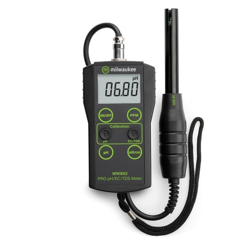 Wielofunkcyjny miernik 3 w 1 firmy Milwaukee umożliwia pomiar pH, EC (przewodności) i TDS za pomocą jednego miernika i jednej sondy.