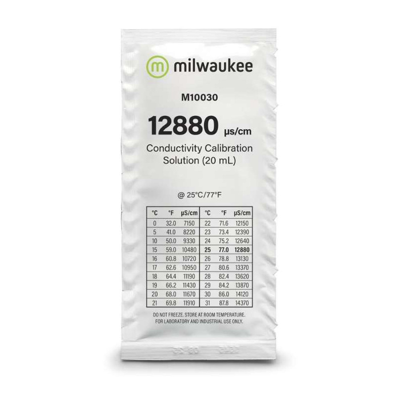 Roztwory do pomiaru przewodności Milwaukee są oznaczone numerem partii i datą ważności oraz zapakowane w hermetyczną saszetkę zabezpieczającą przed manipulacją.