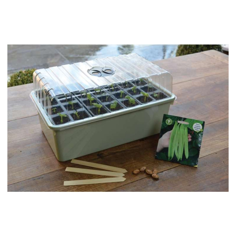 Szklarenka jest idealna dla wszystkich roślin o głębokim systemie korzeniowym, takich jak fasola i groszek cukrowy, ale równie dobrze nadaje się do uprawy innych sadzonek. Formowane wtryskowo komórki roślinne o długiej żywotności i podstawka zapewniają lata wielokrotnego użytku. Po użyciu komórki można łatwo wyczyścić i wysterylizować w zmywarce.