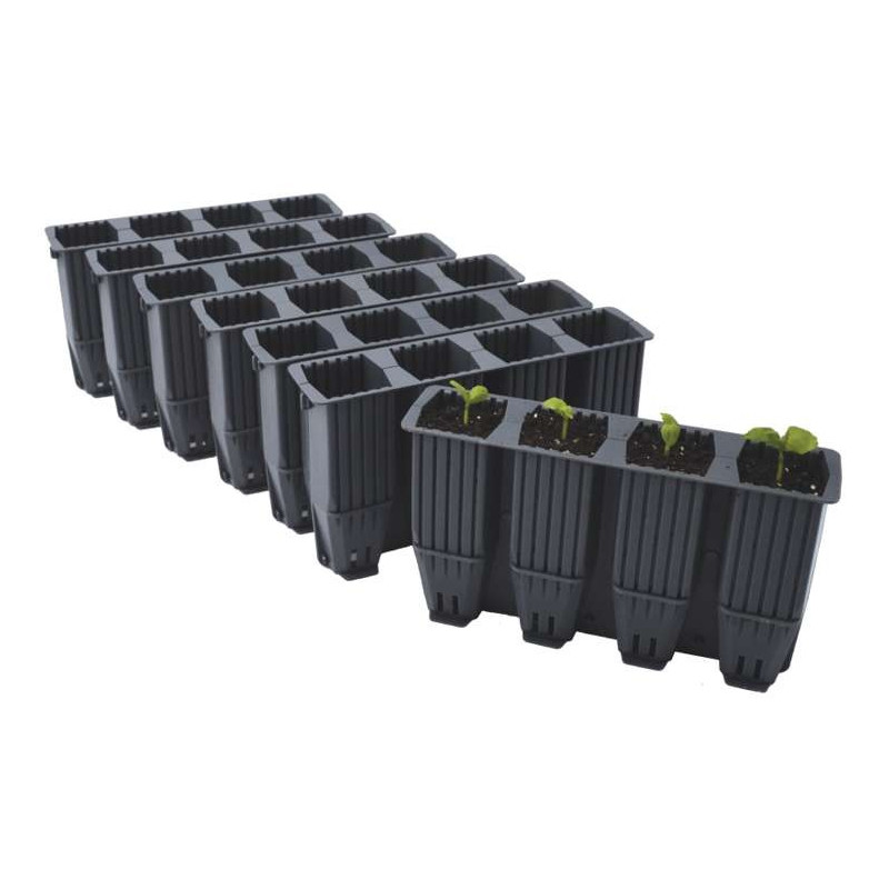 Te wyjątkowo zaprojektowane wkłady umożliwiają łatwą kontrolę rozwoju strefy korzeniowej i zerowe naruszenie korzeni, gdy rośliny są poddawane procesowi przesadzania. Można ich używać jako dodatku do zestawu 28 Cell Deep Root Success (sprzedawany oddzielnie), ale można także ich używać niezależnie od zestawu, ponieważ zmontowane komórki będą stać bez podparcia. Komórki o głębokości 12 cm mają wewnętrzne prążkowane boki, które sprzyjają zdrowemu rozwojowi korzeni w dół. Każda komórka posiada centralny otwór drenażowy i 4 boczne otwory wentylacyjne zapewniające doskonały drenaż i korzystne przycinanie powietrzne systemu korzeniowego. Idealny dla wszystkich roślin o głębokim systemie korzeniowym, takich jak fasola i groszek cukrowy, ale równie dobrze nadaje się do uprawy innych sadzonek. Formowane wtryskowo komórki roślinne zapewniają lata wielokrotnego użytku. Można je łatwo czyścić i sterylizować po użyciu, a nawet można je myć w zmywarce do 50°C.