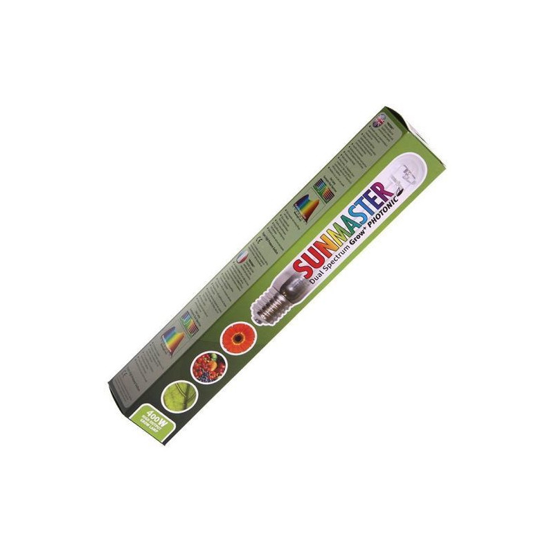 | • Lampa sodowa HPS 400W • Gwint E40 • 55 000 lumenów • Spektrum światła na obie fazy • Żywotność: 32 000h • Model: Sunmaster hps dual